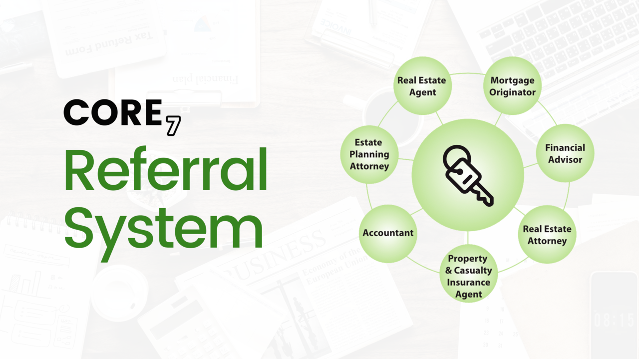 Looking to partner with a Realtor and Financial Advisor to form a Core7 referral team.